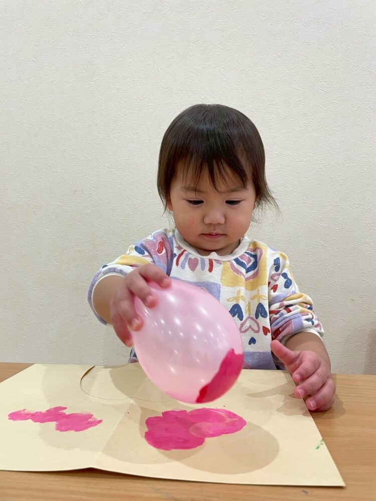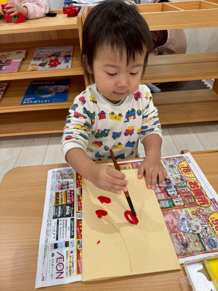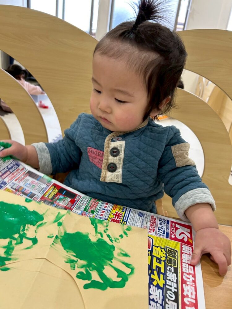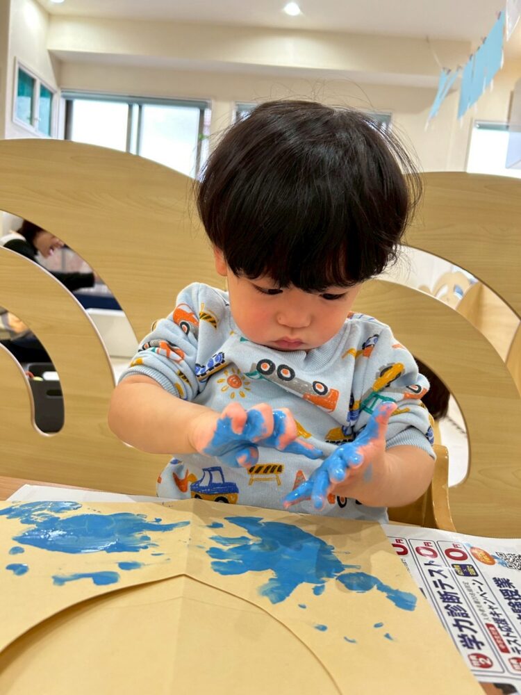 こあら組さんは手に絵の具をつけぬりぬり・・・