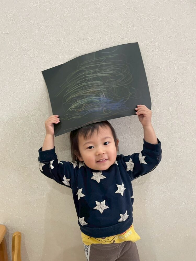 ぱんだ組さんは黒の画用紙に