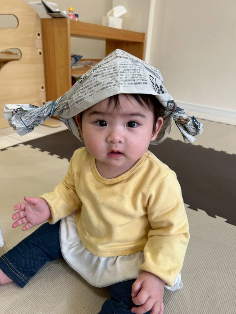 新聞紙帽子、似合ってるね🥰