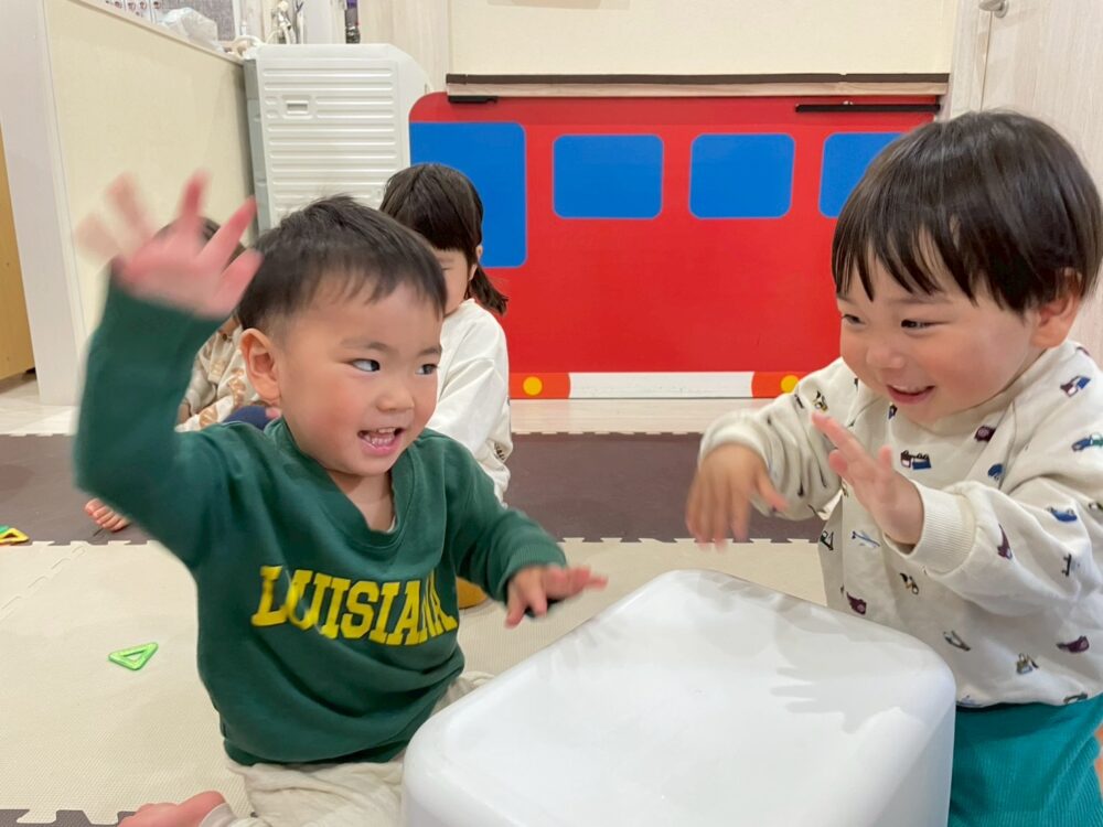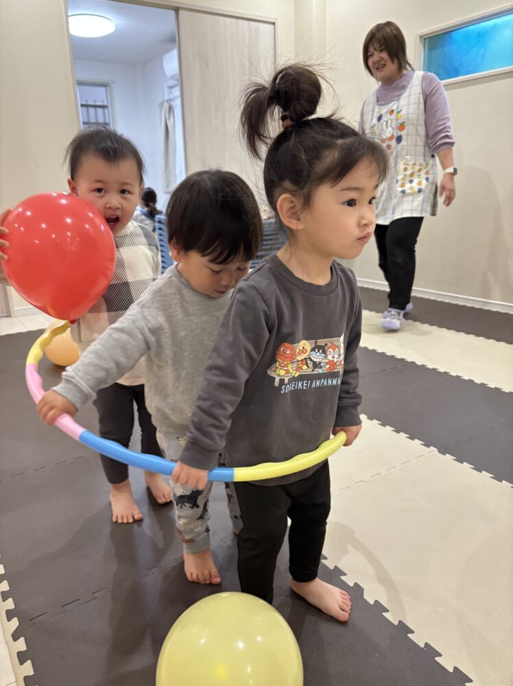 保育士が歌う声に合わせて太鼓遊びを楽しみました🪘🎶